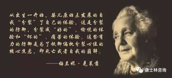 克莱因是儿童精神分析研究的先驱,她的研究的深远意义在于她打开了理解婴儿早期的心理历程的途径,这些早期心理历程支配着婴儿的内心活动,她提出的偏执分裂位和抑郁位两个位相转化的概念是对精神分析非常重要的贡献。我们知道弗洛伊德是性心理发展理论,他认为随着年龄的不同心理发展经历5个阶段,每个阶段有各自的发展任务,由一条主线连接起来,这个主线是性,但是广义的性,不单指生殖器的性。从口欲期开始,之后像时钟一样,自然进入肛欲期,然后性蕾期、潜伏期等等,但克莱因不同,她用了Position这个术语,认为人的心理总是在偏执分裂位和抑郁位两个位相之间不停的转化,就像"合久必分分久必合"一样。弗洛伊德的理论是静态的,克莱因的观点是动态的,非常灵活,不是阶段性的,也不同于退行,而是螺旋式发展,每个位相防御的结构上相同,两个位相不断转化,波浪式前进,不是在原地打转,而是在不断转化中进步的过程,也就是说从偏执分裂位进入抑郁位,再进入偏执分裂位已经不是原来的偏执分裂位了,已经有所不同,我们的一生就在两个位相间不断地转化。在临床情景中,在我们试图理解患者的时候,两个位相转化的概念非常的有用,它在我们给患者的治疗中带来了方向感,患者也是沿着这样的转化进步的。随着位相不断转化,治疗师的解释也是不断变化的。今天我们主要介绍的是偏执分裂位。
